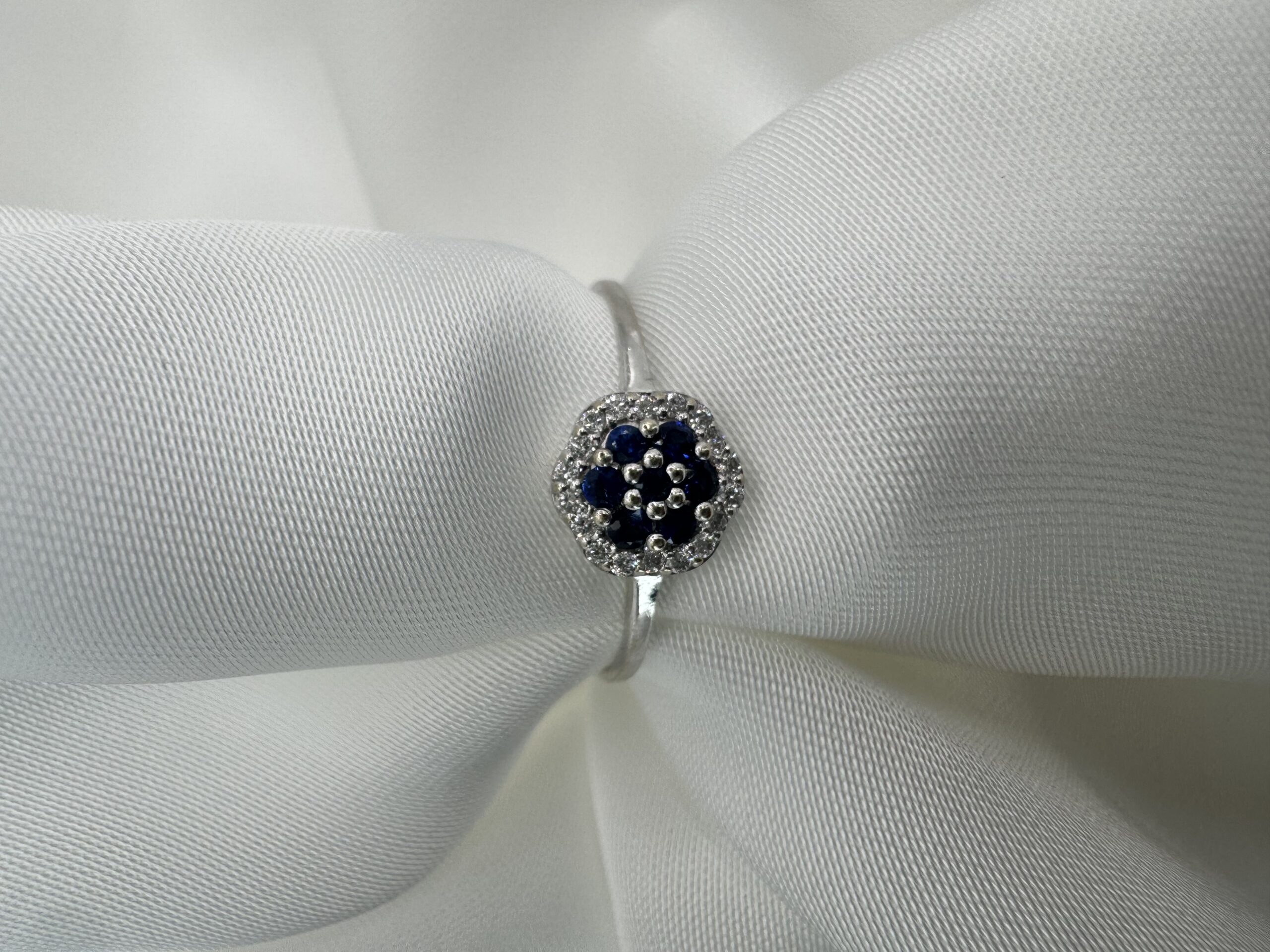 Кольцо с натуральным синим сапфиром и бриллиантами – подарок со смыслом