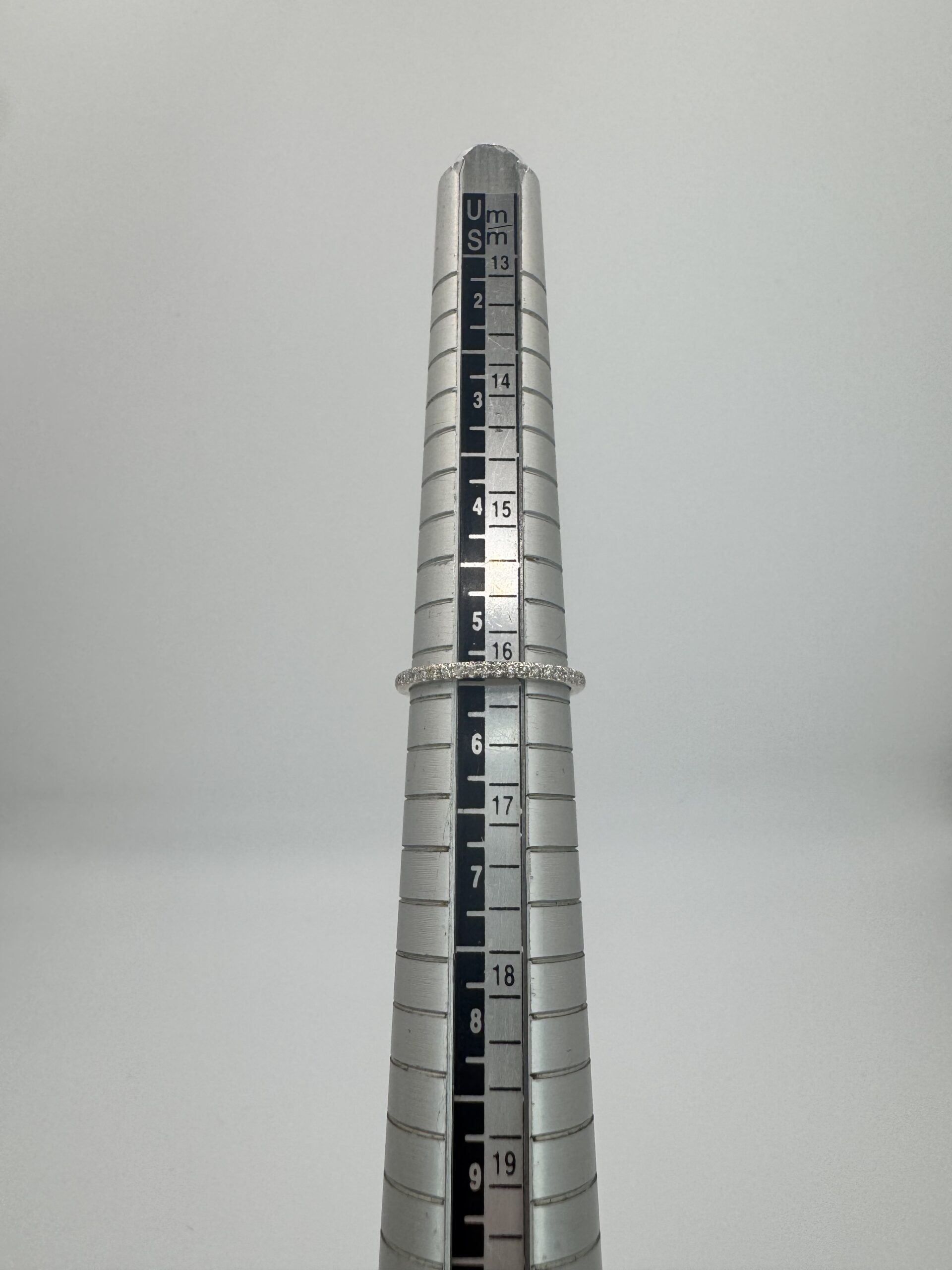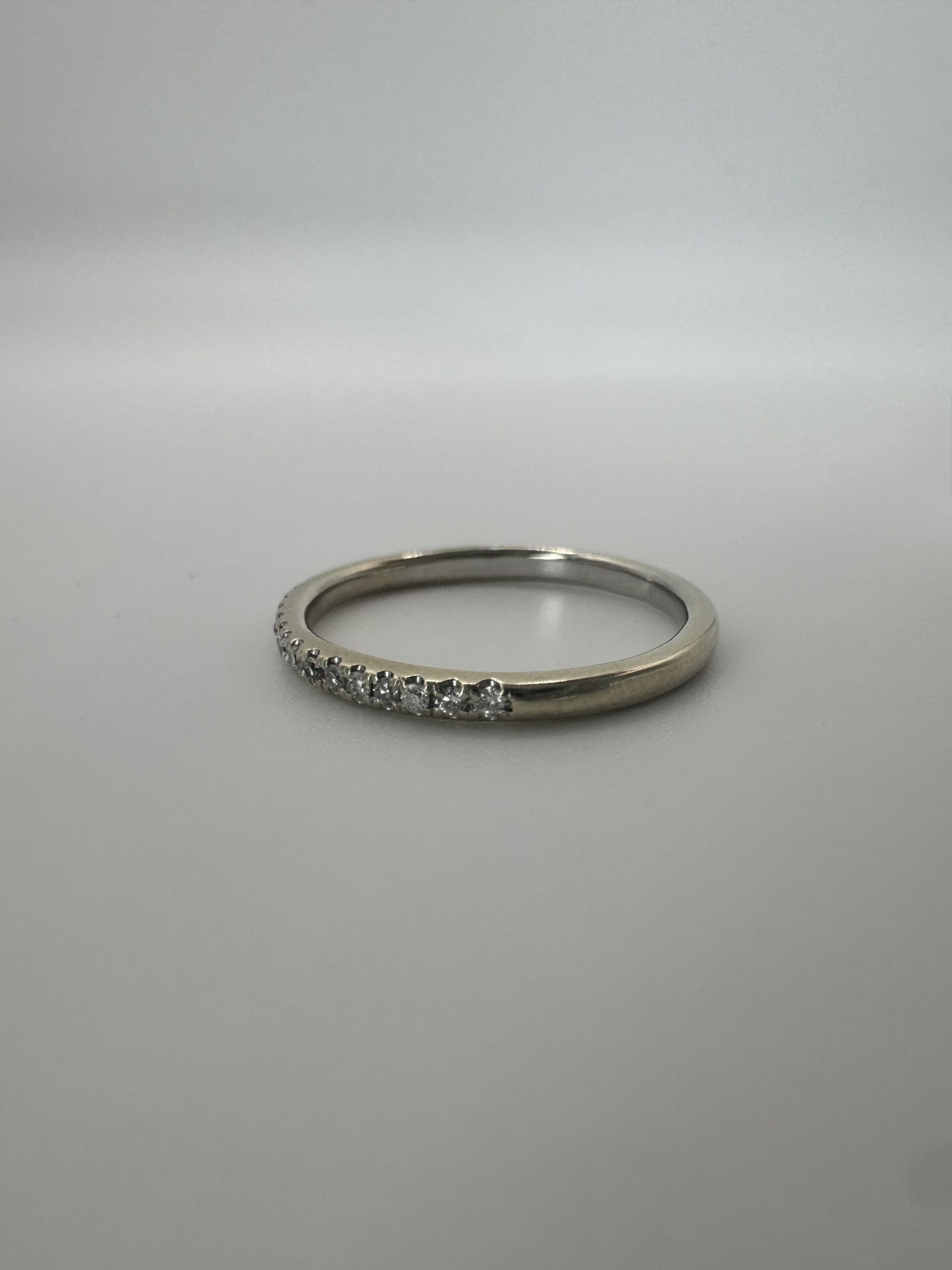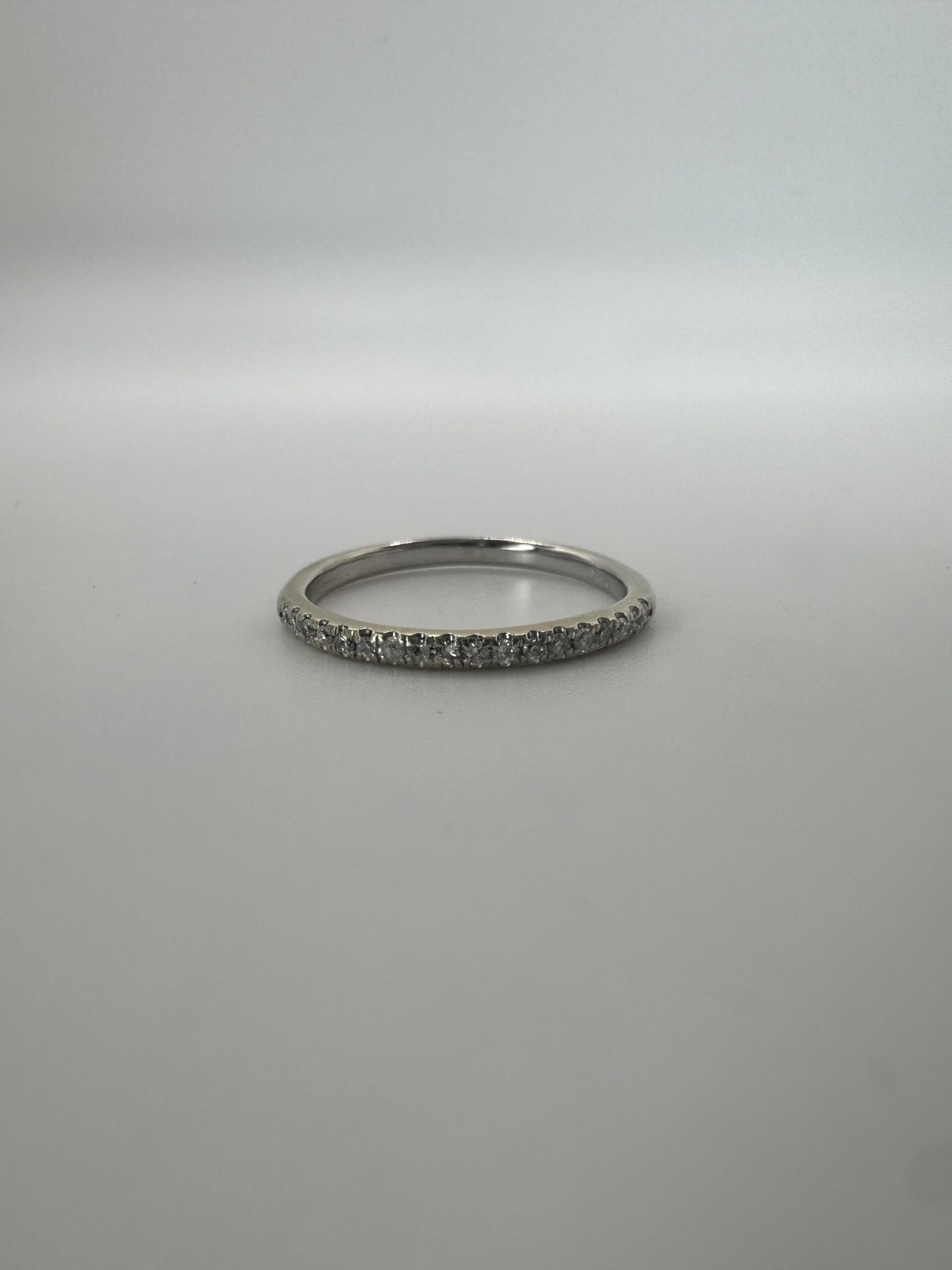 Изящный классический дизайн с дорожкой сверкающих бриллиантами — идеально для повседневной носки, в качестве обручального кольца или в сочетании с помолвочным.