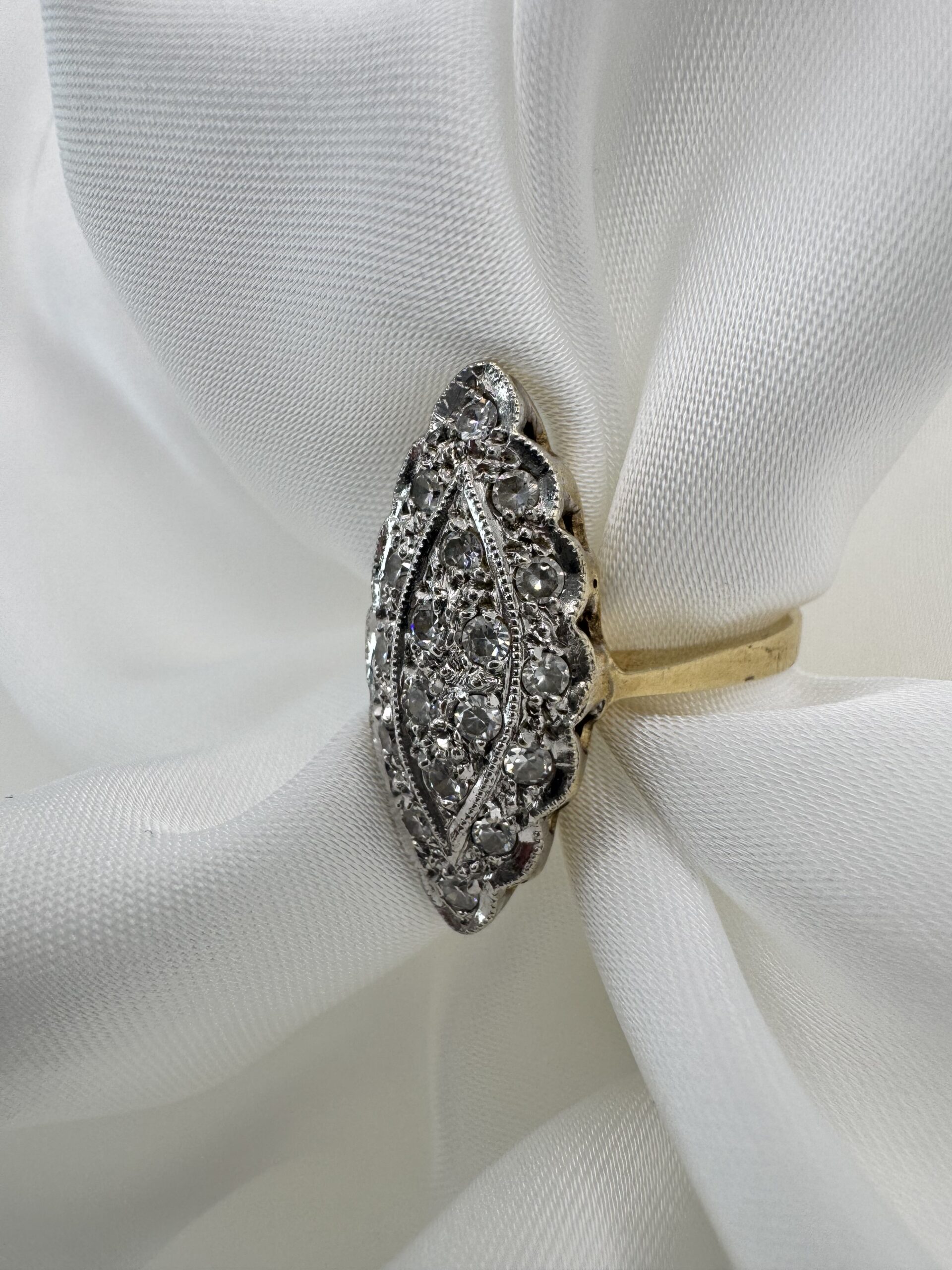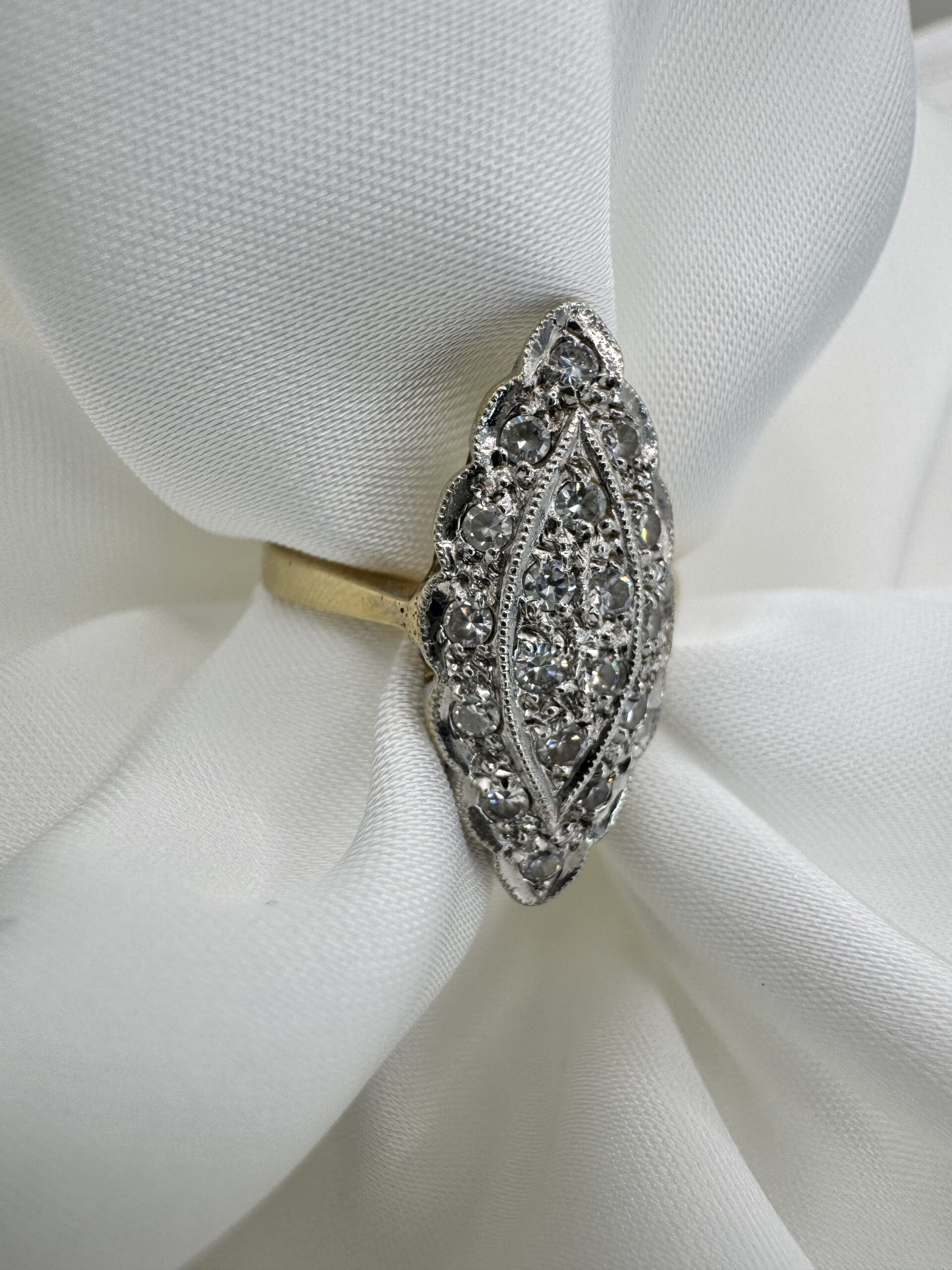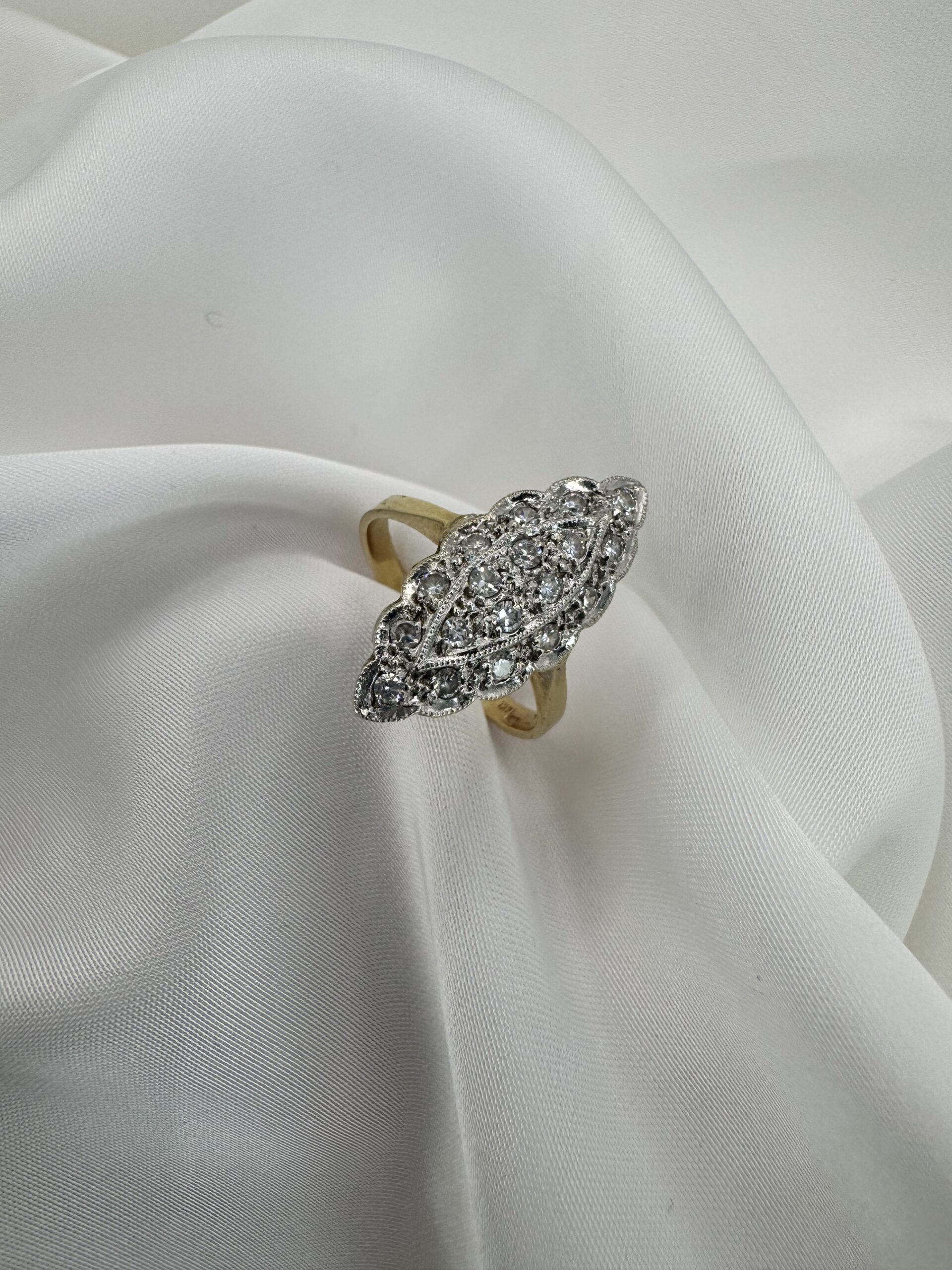 Изящный, но в то же время эффектный дизайн, инкрустированный сверкающими натуральными бриллиантами, которые придают кольцу необычайную глубину и блеск. Сочетание классицизма и современного стиля создает украшение, которое невозможно игнорировать.